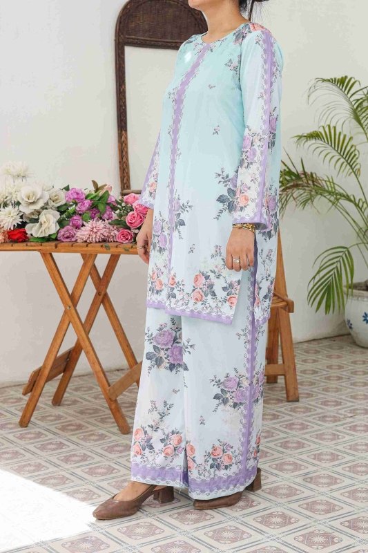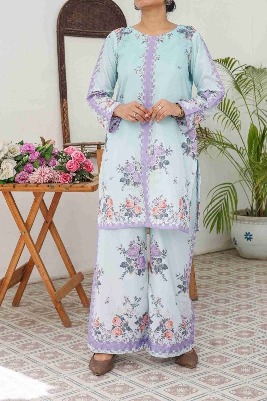 Step into effortless elegance with our Lilac Garden Co-Ord Set, beautifully crafted in premium Russian Silk. This pastel aqua base adorned with delicate lilac and blush floral prints brings a refreshing and graceful charm to your wardrobe. Designed for both daily wear and semi-formal gatherings, this co-ord offers a perfect blend of comfort and style.