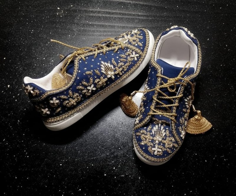 From a pictorial photographically bridal sneaker to actually manufacturing it with the finest artisans it took us many hours and days to strike the combo of hit design - pattern - colour and to render traditional design on a modern sneaker.