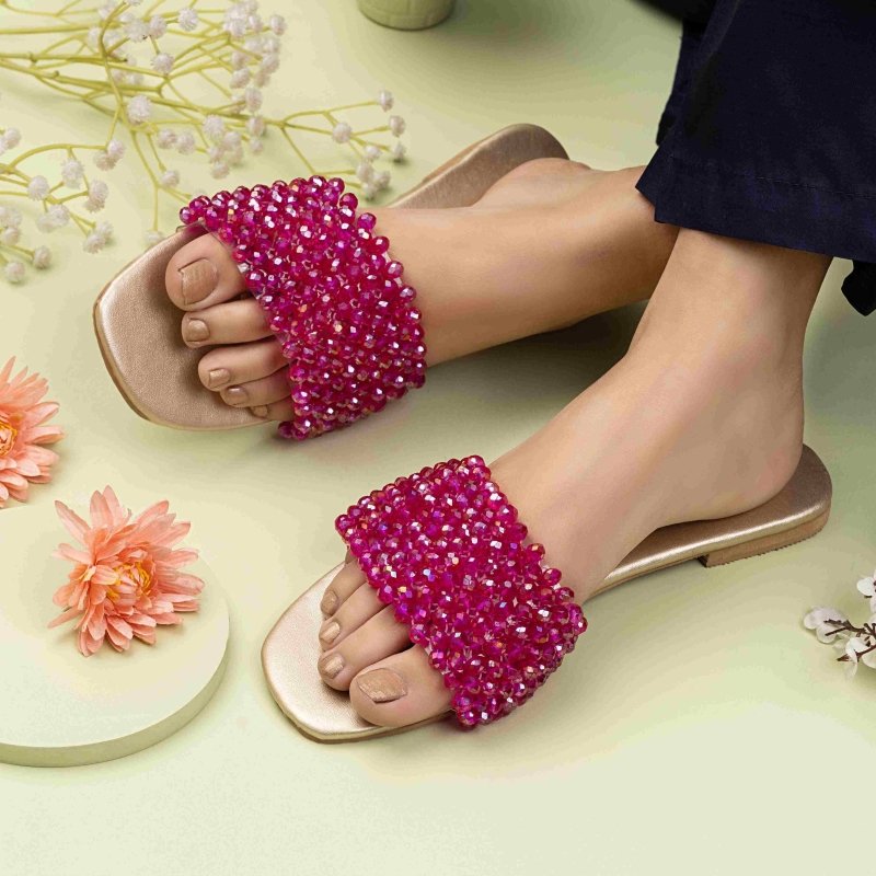 Designed for both festive occasions and upscale everyday wear, these slippers add a radiant touch to any outfit. Whether you're dressing up for a mehndi event or elevating a casual ensemble, these flats ensure you stand out effortlessly.