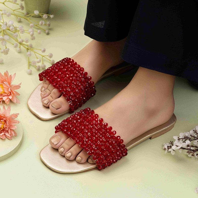 Designed for both festive occasions and upscale everyday wear, these slippers add a radiant touch to any outfit. Whether you're dressing up for a mehndi event or elevating a casual ensemble, these flats ensure you stand out effortlessly.
