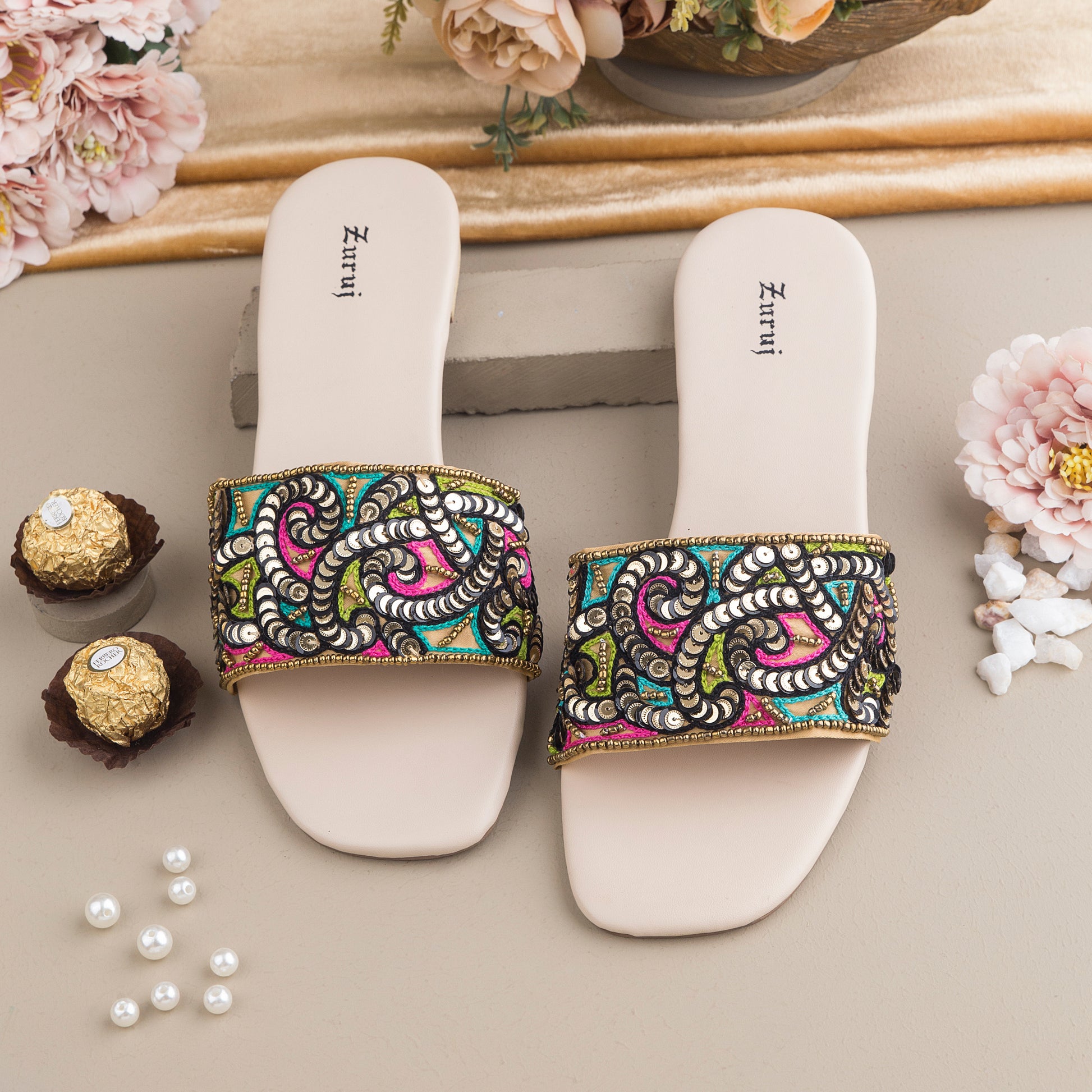 FL-42-BLACK is a quintessential exemplary of pleasant, luxurious and traditional artistry FLATS made with beautiful hand made work . These are the adorable heritages of Pakistan that are hand-sewed by determined cordwainers of rural areas to exhibit the utmost beauty of prepossessing feet.