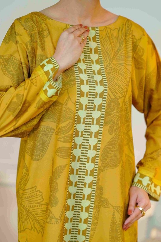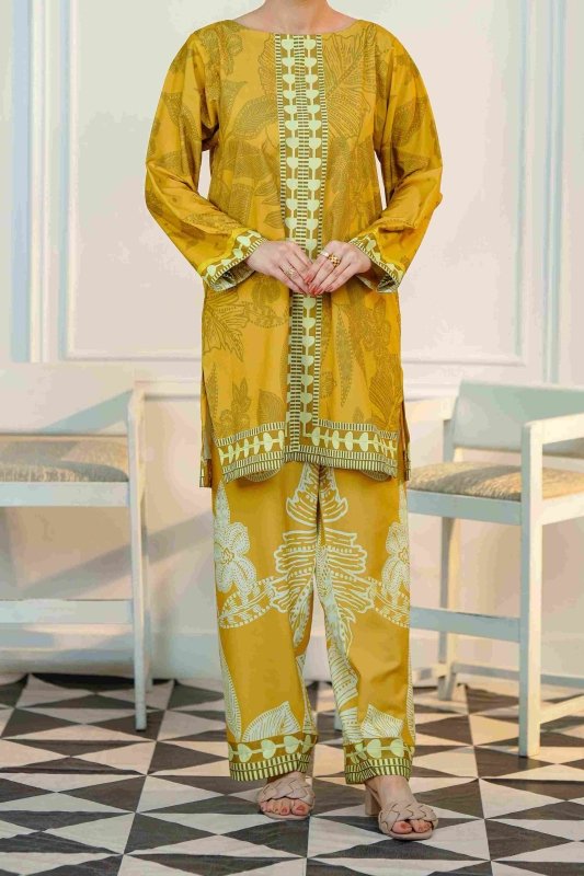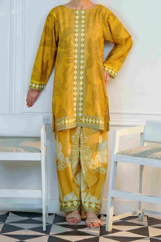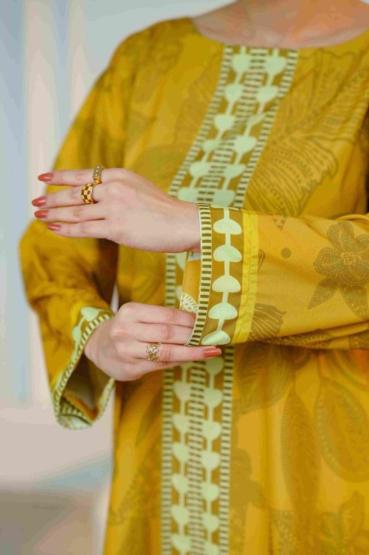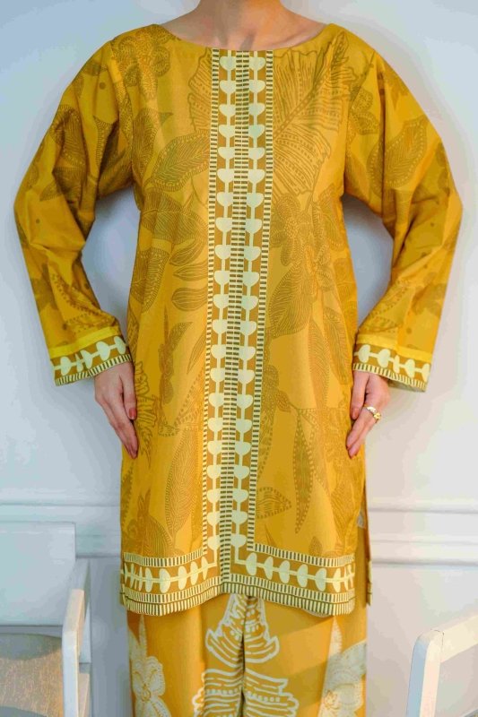 Make a statement with the Golden Bloom Co-Ord Set, a 2-piece stitched ensemble crafted for all-season versatility and elegance.