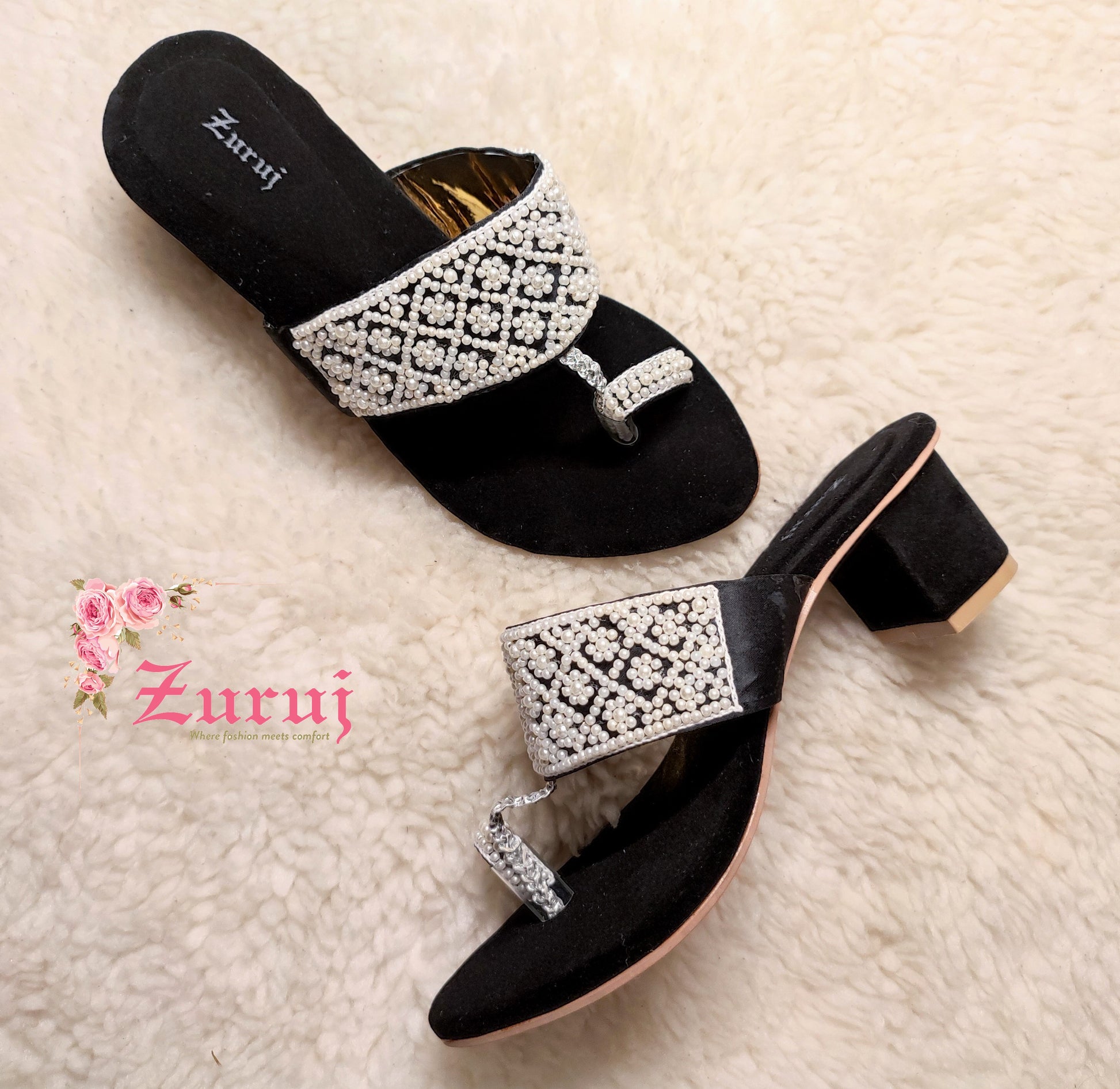 HL-22-Black a quintessential exemplary kolhapuri of pleasant, luxurious and traditional artistry made on Black Base with beautiful hand made work. These embroidered shoes heels are the adorable heritages of Pakistan that are hand-sewed by determined cordwainers of rural areas to exhibit the utmost beauty of prepossessing feet.