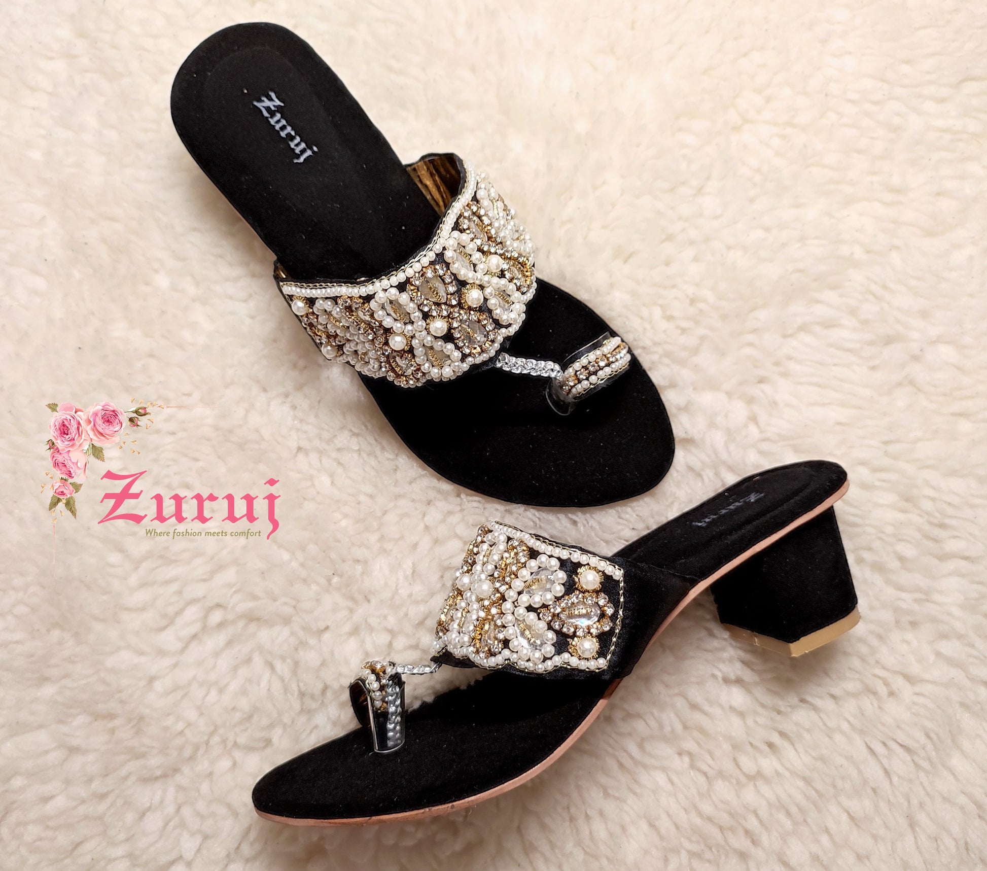 HL-24 a quintessential exemplary kolhapuri of pleasant, luxurious and traditional artistry made on Black Base with beautiful hand made work. These embroidered shoes heels are the adorable heritages of Pakistan that are hand-sewed by determined cordwainers of rural areas to exhibit the utmost beauty of prepossessing feet.