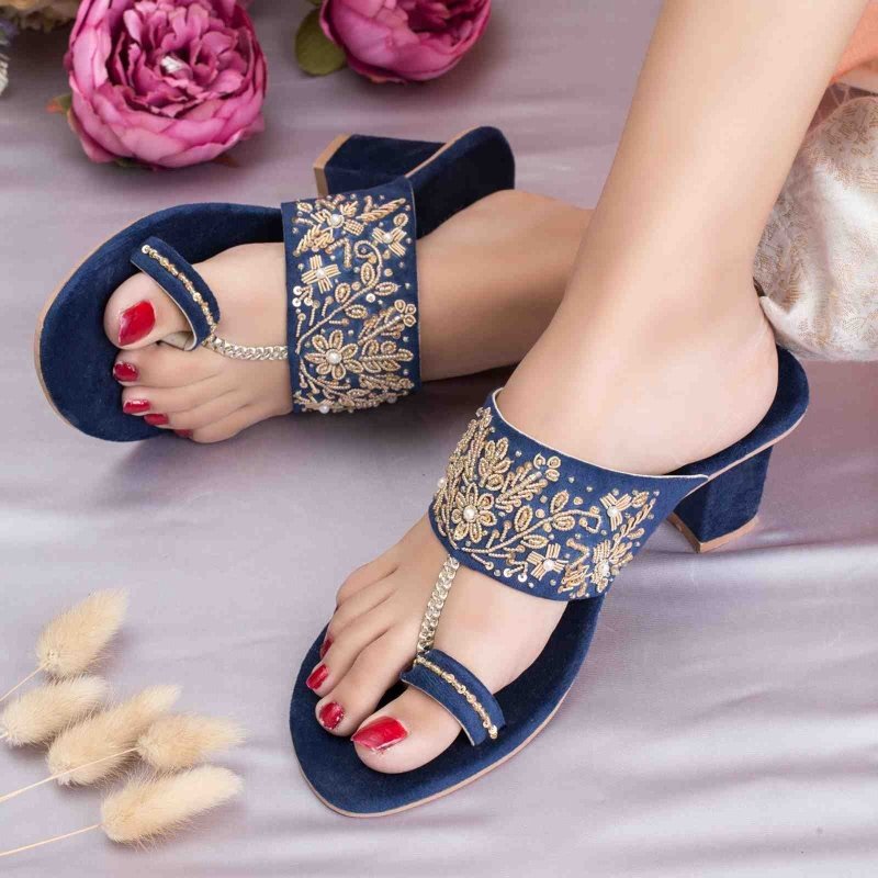 HL-240-Navy Blue a quintessential exemplary kolhapuri of pleasant, luxurious and traditional artistry made on Navy Blue Base with beautiful hand made work. These embroidered shoes heels are the adorable heritages of Pakistan that are hand-sewed by determined cordwainers of rural areas to exhibit the utmost beauty of prepossessing feet.