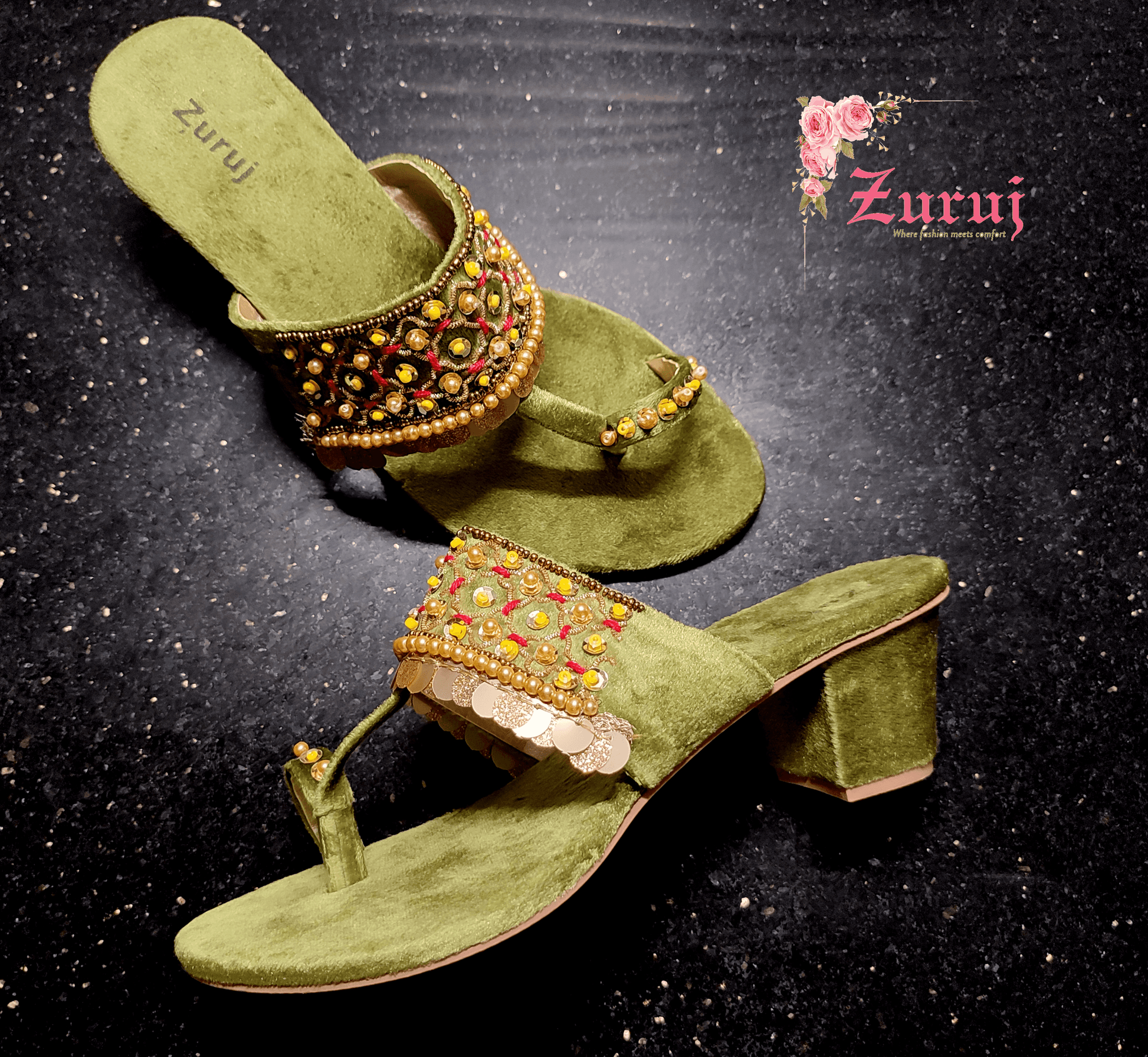 HL-41-Mehandi is a quintessential exemplary kolhapuri of pleasant, luxurious and traditional artistry made on Mehandi Base with beautiful hand made work. These embroidered shoes heels are the adorable heritages of Pakistan that are hand-sewed by determined cordwainers of rural areas to exhibit the utmost beauty of prepossessing feet.