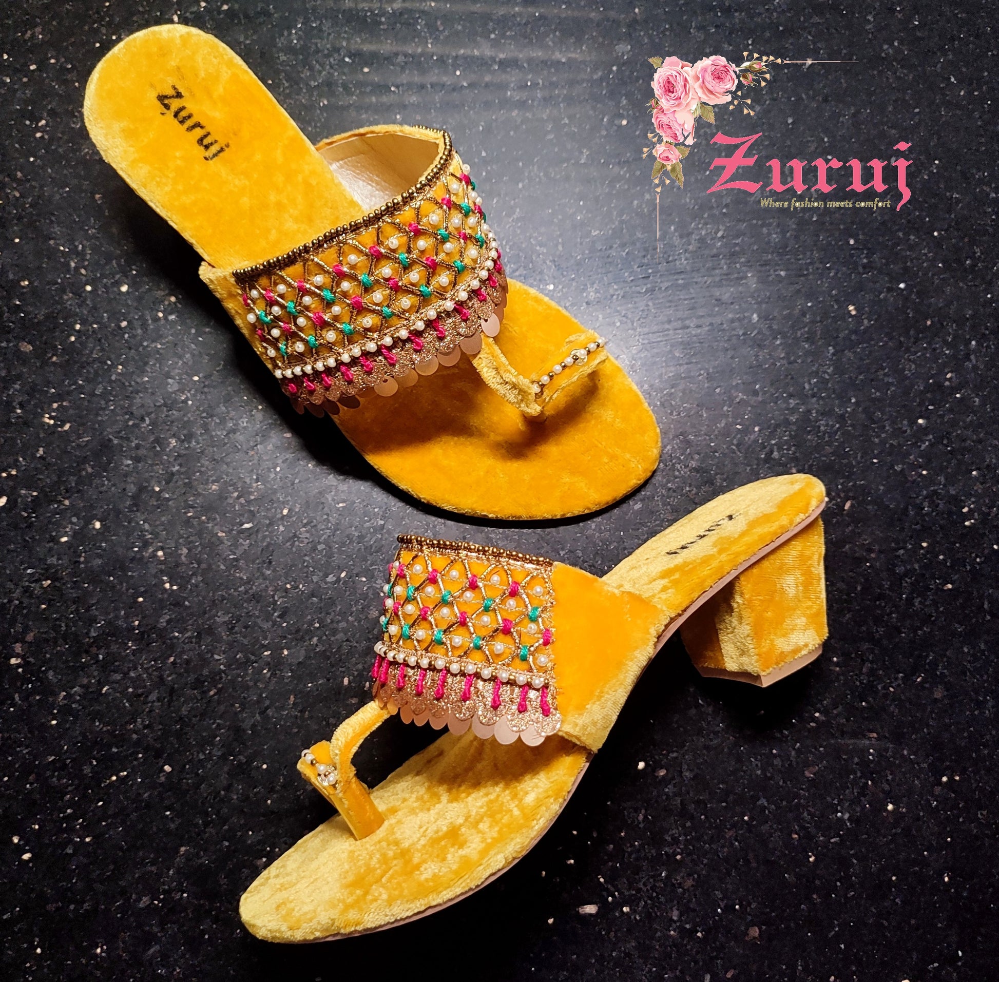 HL-44-Yellow is a quintessential exemplary kolhapuri of pleasant, luxurious and traditional artistry made on Yellow Base with beautiful hand made work. These embroidered shoes heels are the adorable heritages of Pakistan that are hand-sewed by determined cordwainers of rural areas to exhibit the utmost beauty of prepossessing feet.