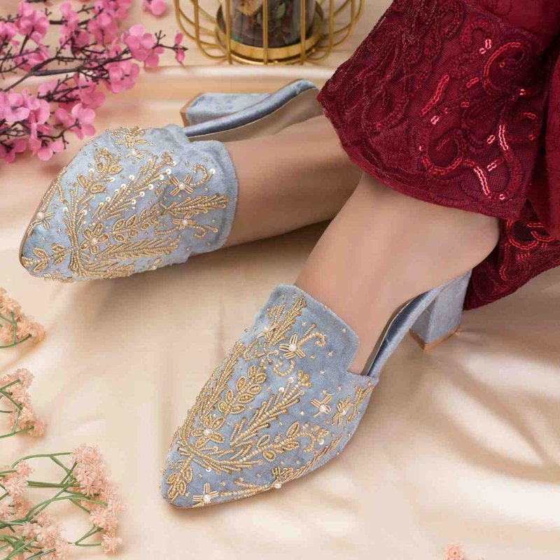 HM-240-Grey is a quintessential exemplary of pleasant, luxurious and traditional artistry made on Grey base with beautiful combination OF embroidery work. These are the adorable heritages of Pakistan that are hand-sewed by determined cordwainers of rural areas to exhibit the utmost beauty of prepossessing feet.