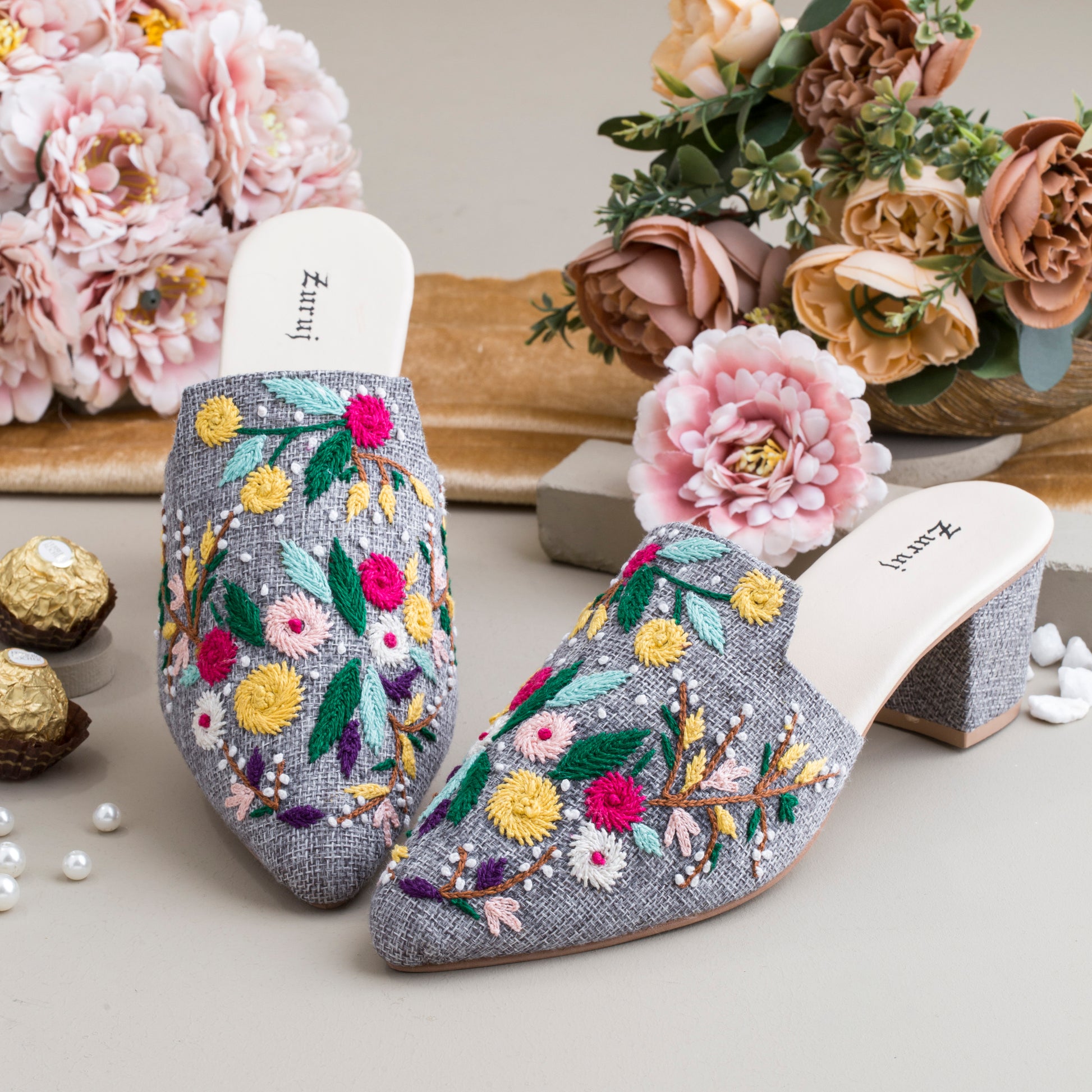 HM-27-j-GREY is a quintessential exemplary of pleasant, luxurious and traditional artistry made on GREY base with beautiful combination embroidery work. These are the adorable heritages of Pakistan that are hand-sewed by determined cordwainers of rural areas to exhibit the utmost beauty of prepossessing feet.