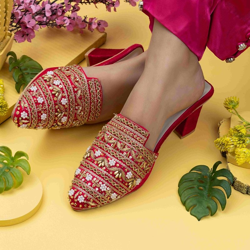 HM-281-Red is a quintessential exemplary of pleasant, luxurious and traditional artistry made on Red Base with beautiful combination OF embroidery work. These are the adorable heritages of Pakistan that are hand-sewed by determined cordwainers of rural areas to exhibit the utmost beauty of prepossessing feet.