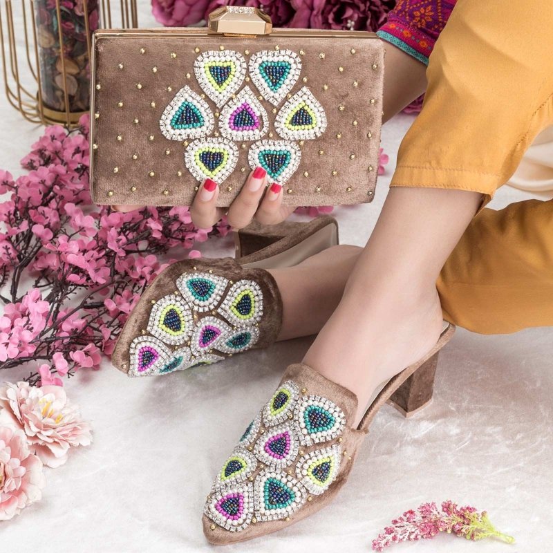 HMC-255-Chickoo is a quintessential exemplary Combination of MULES X CLUTCH on Chickoo base with pleasant, luxurious and traditional artistry. These are the adorable heritages of Pakistan that are hand-sewed by determined cordwainers of rural areas to exhibit the utmost beauty.