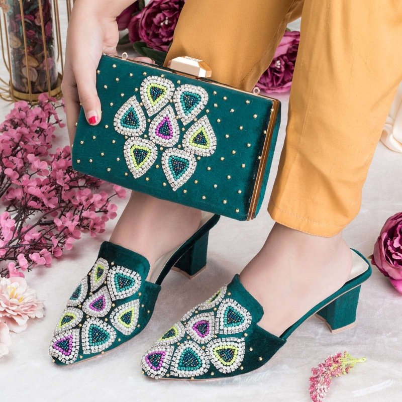 HMC-255-Green is a quintessential exemplary Combination of MULES X CLUTCH on Green base with pleasant, luxurious and traditional artistry. These are the adorable heritages of Pakistan that are hand-sewed by determined cordwainers of rural areas to exhibit the utmost beauty.
