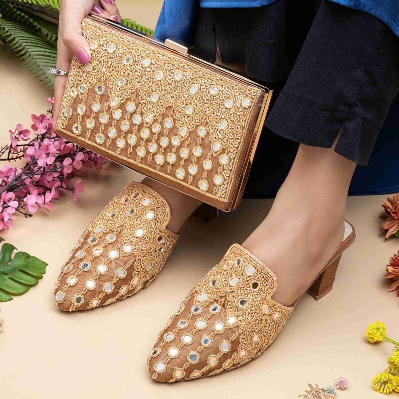 HMC-262-Beige is a quintessential exemplary Combination of MULES X CLUTCH on Beige base with pleasant, luxurious and traditional artistry. These are the adorable heritages of Pakistan that are hand-sewed by determined cordwainers of rural areas to exhibit the utmost beauty.