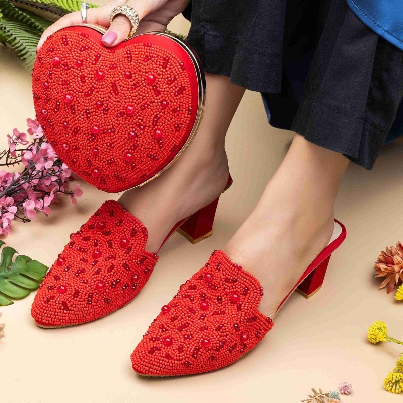 HMC-BS9-Red is a quintessential exemplary Combination of MULES X CLUTCH on Red base with pleasant, luxurious and traditional artistry. These are the adorable heritages of Pakistan that are hand-sewed by determined cordwainers of rural areas to exhibit the utmost beauty.