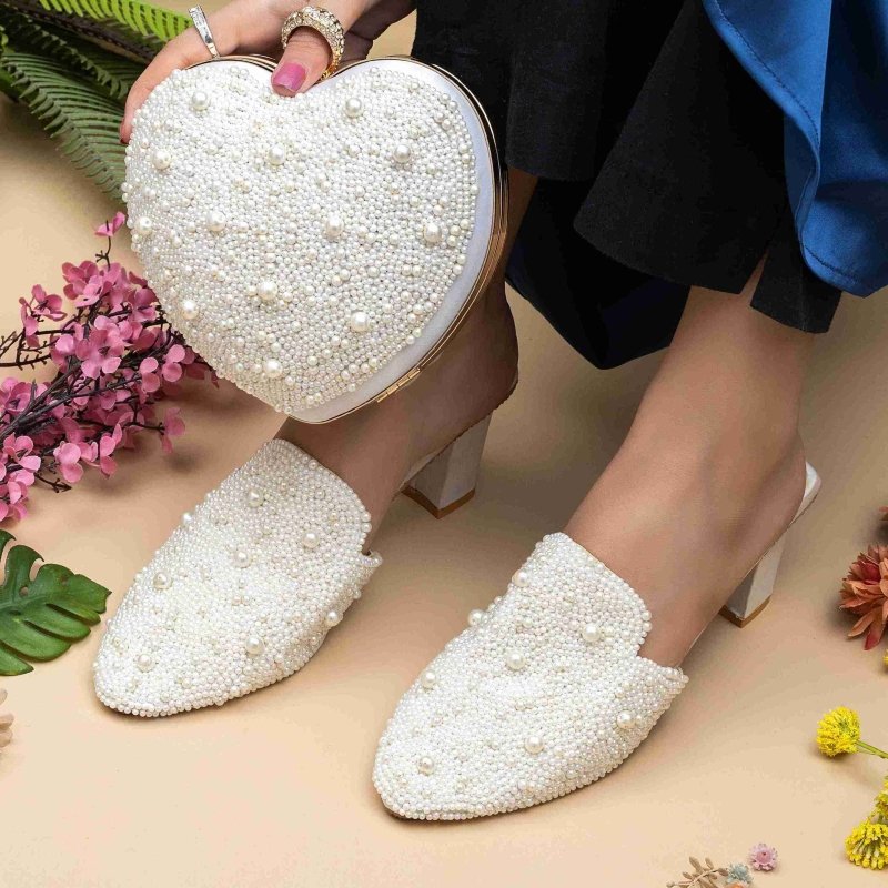 HMC-BS9-White is a quintessential exemplary Combination of MULES X CLUTCH on White base with pleasant, luxurious and traditional artistry. These are the adorable heritages of Pakistan that are hand-sewed by determined cordwainers of rural areas to exhibit the utmost beauty.