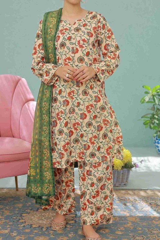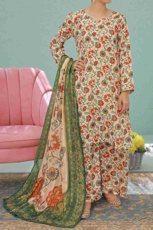 Digitally Printed Shirt, Trouser & Zari Monar Dupatta (2.44 MTR)