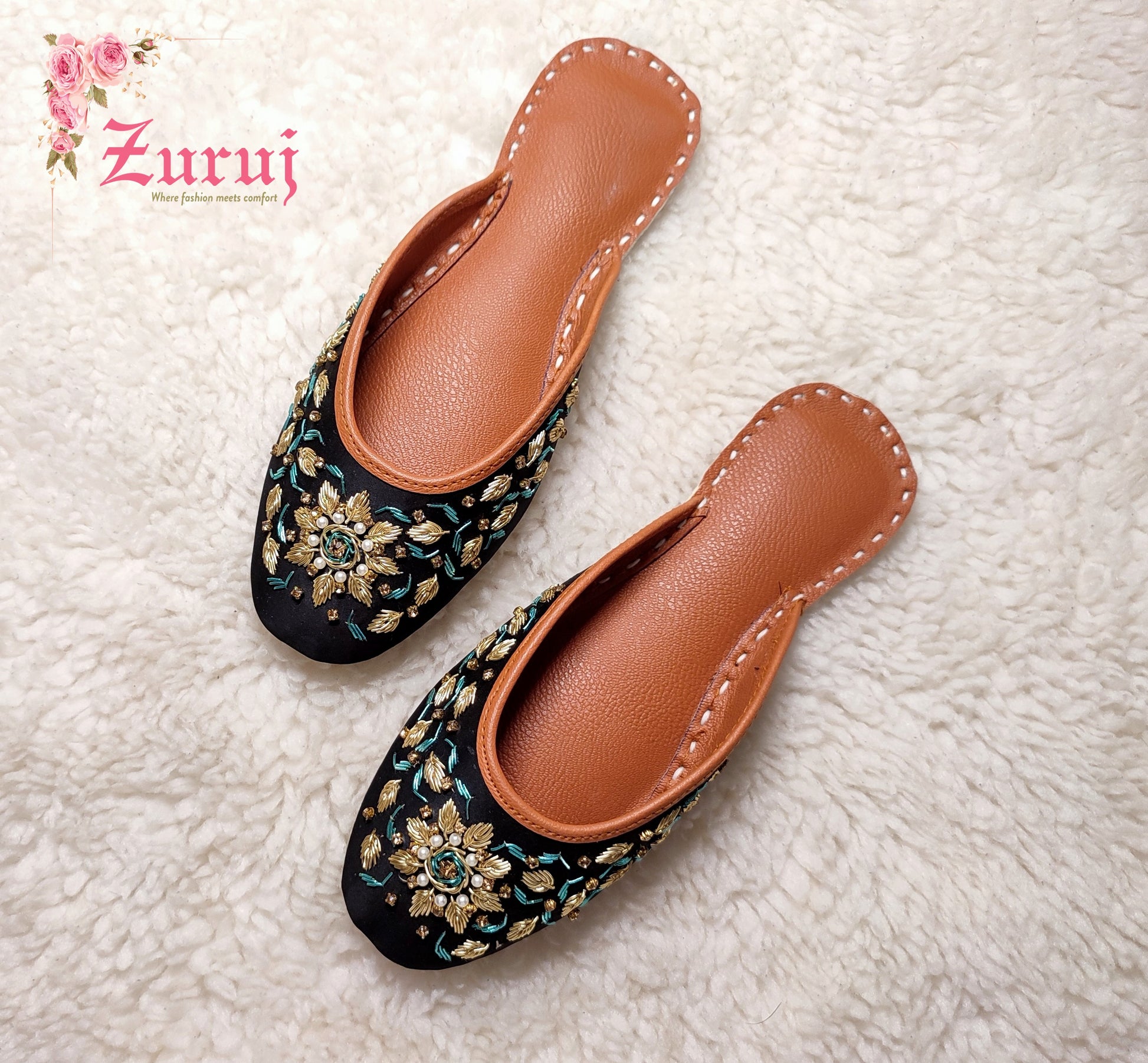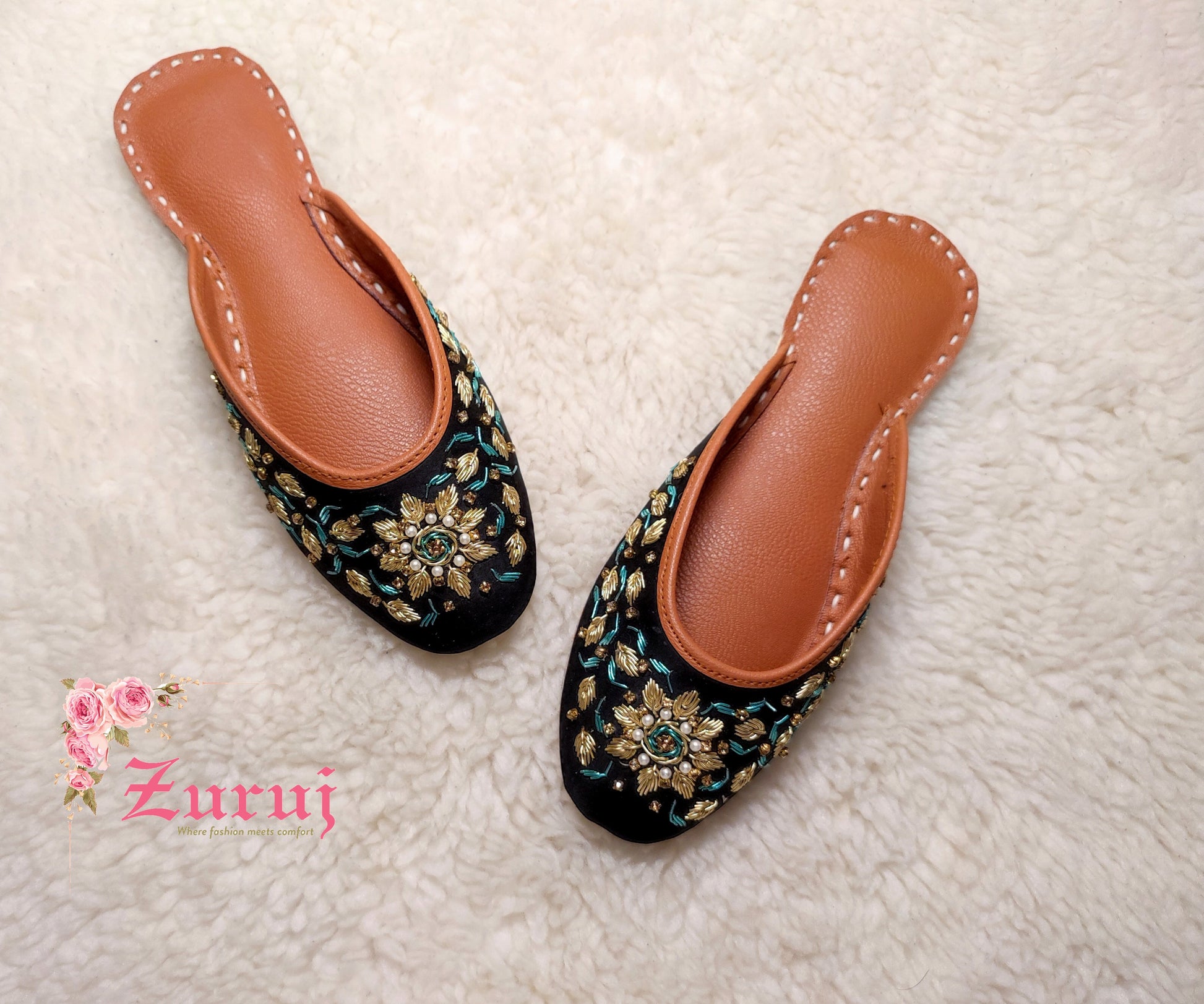 Ju-10 is a quintessential exemplary of pleasant, luxurious and traditional artistry made on Black color base with beautiful handmade work. These are the adorable heritages of Pakistan that are hand-sewed by determined cordwainers of rural areas to exhibit the utmost beauty of prepossessing feet.