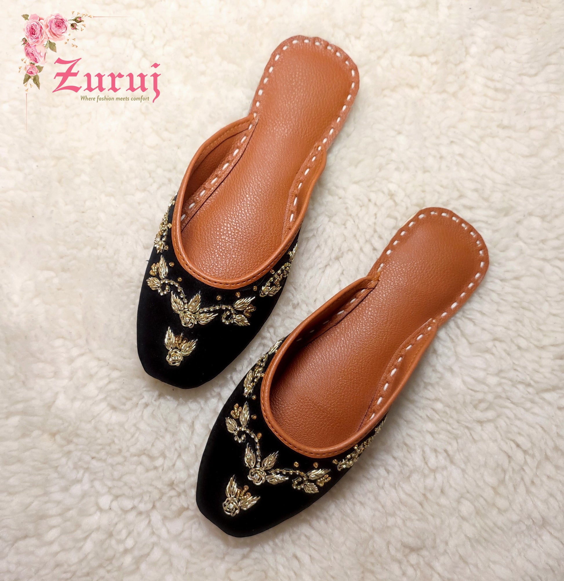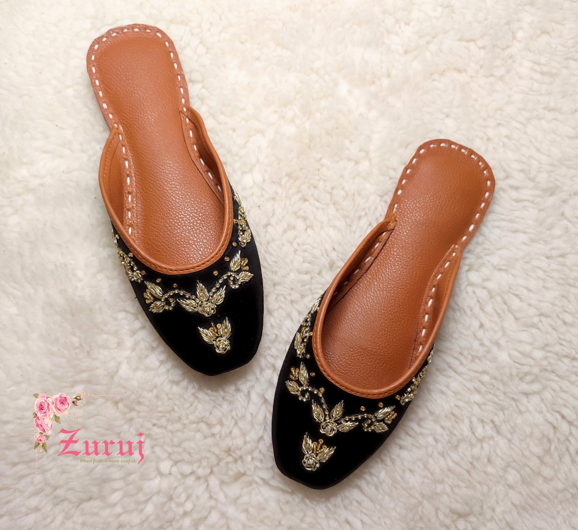 Ju-110 is a quintessential exemplary of pleasant, luxurious and traditional artistry made on Black color base with beautiful handmade work. These are the adorable heritages of Pakistan that are hand-sewed by determined cordwainers of rural areas to exhibit the utmost beauty of prepossessing feet.