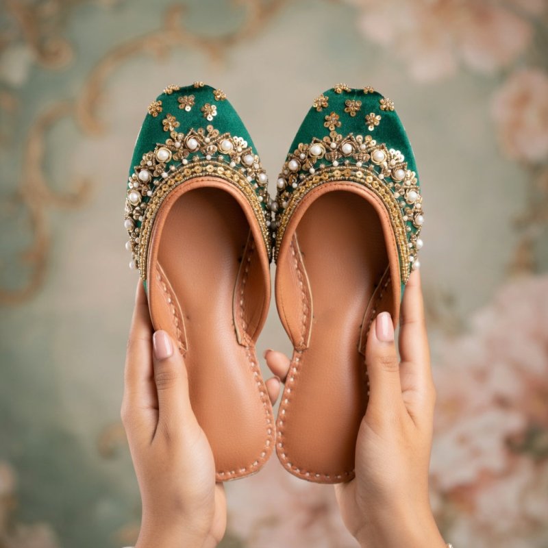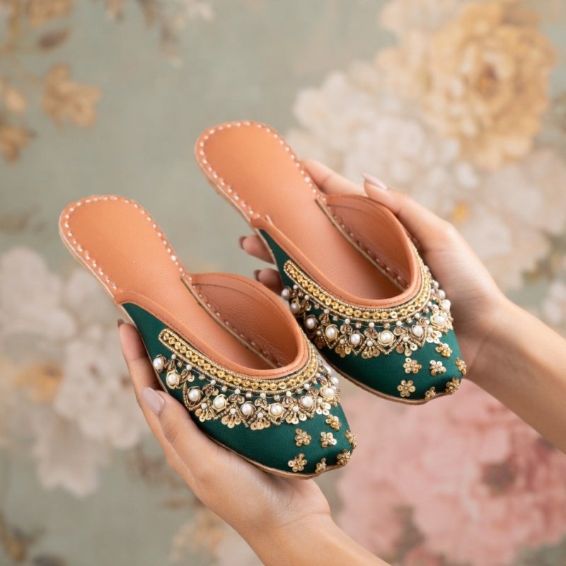Ju-92-GREEN is a quintessential exemplary of pleasant, luxurious and traditional artistry made on Green color base with beautiful handmade work. These are the adorable heritages of Pakistan that are hand-sewed by determined cordwainers of rural areas to exhibit the utmost beauty of prepossessing feet.