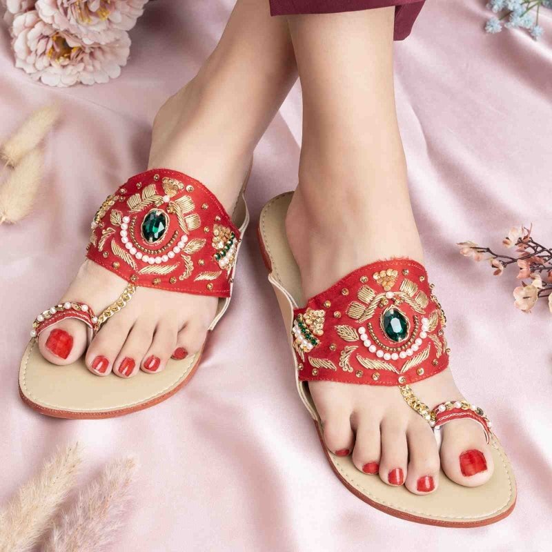 KL-12 is a quintessential exemplary of pleasant, luxurious and traditional artistry Kolhapuri made on baby pink base with golden dabka and Green stone work. These are the adorable heritages of Pakistan that are hand-sewed by determined cordwainers of rural areas to exhibit the utmost beauty of prepossessing feet.