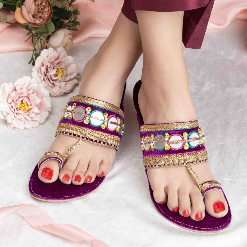 Kl-38-purple is a quintessential exemplary kolhapuri of pleasant, luxurious and traditional artistry made with beautiful hand made work. These are the adorable heritages of Pakistan that are hand-sewed by determined cordwainers of rural areas to exhibit the utmost beauty of prepossessing feet.