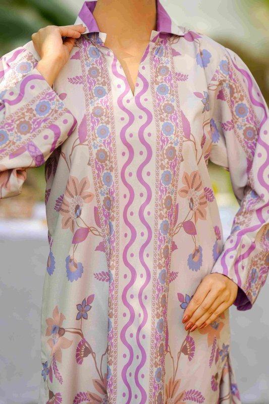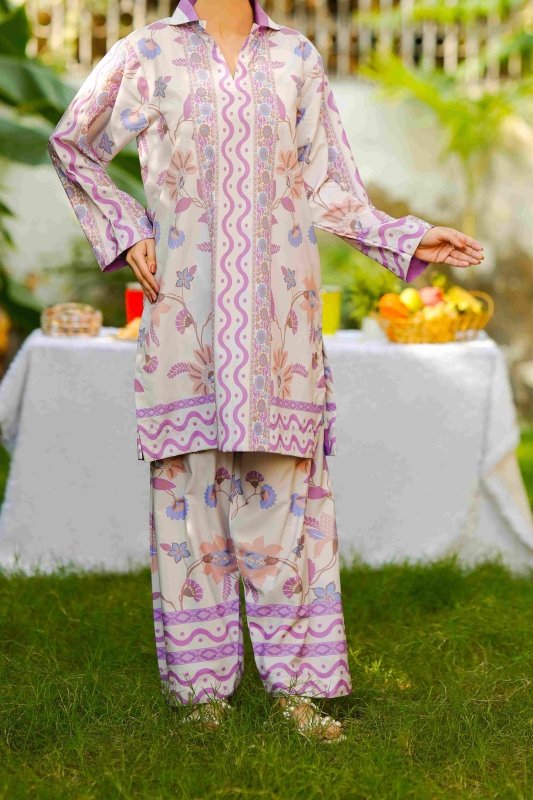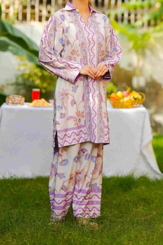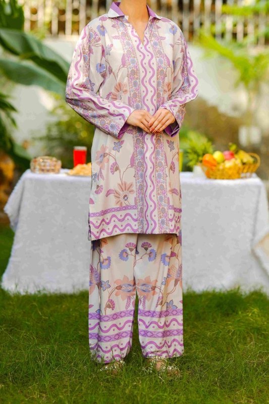 Immerse yourself in serene sophistication with the Lavender Bliss Co-Ord Set, a delicate 2-piece stitched ensemble designed for effortless grace and comfort.