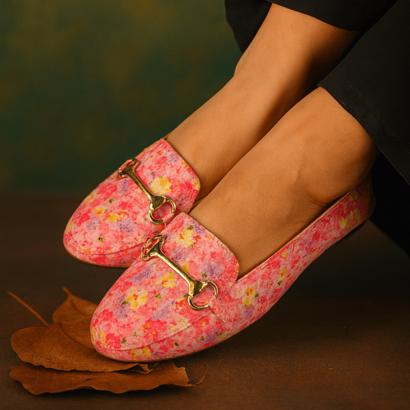 Step into spring with the Zurujwalk Blossom Dust Loafers – where soft pastel pink meets a dreamy garden bloom. These handcrafted women's flats feature a watercolor-inspired floral print on a lightweight canvas upper, adorned with elegant gold bit detailing.
