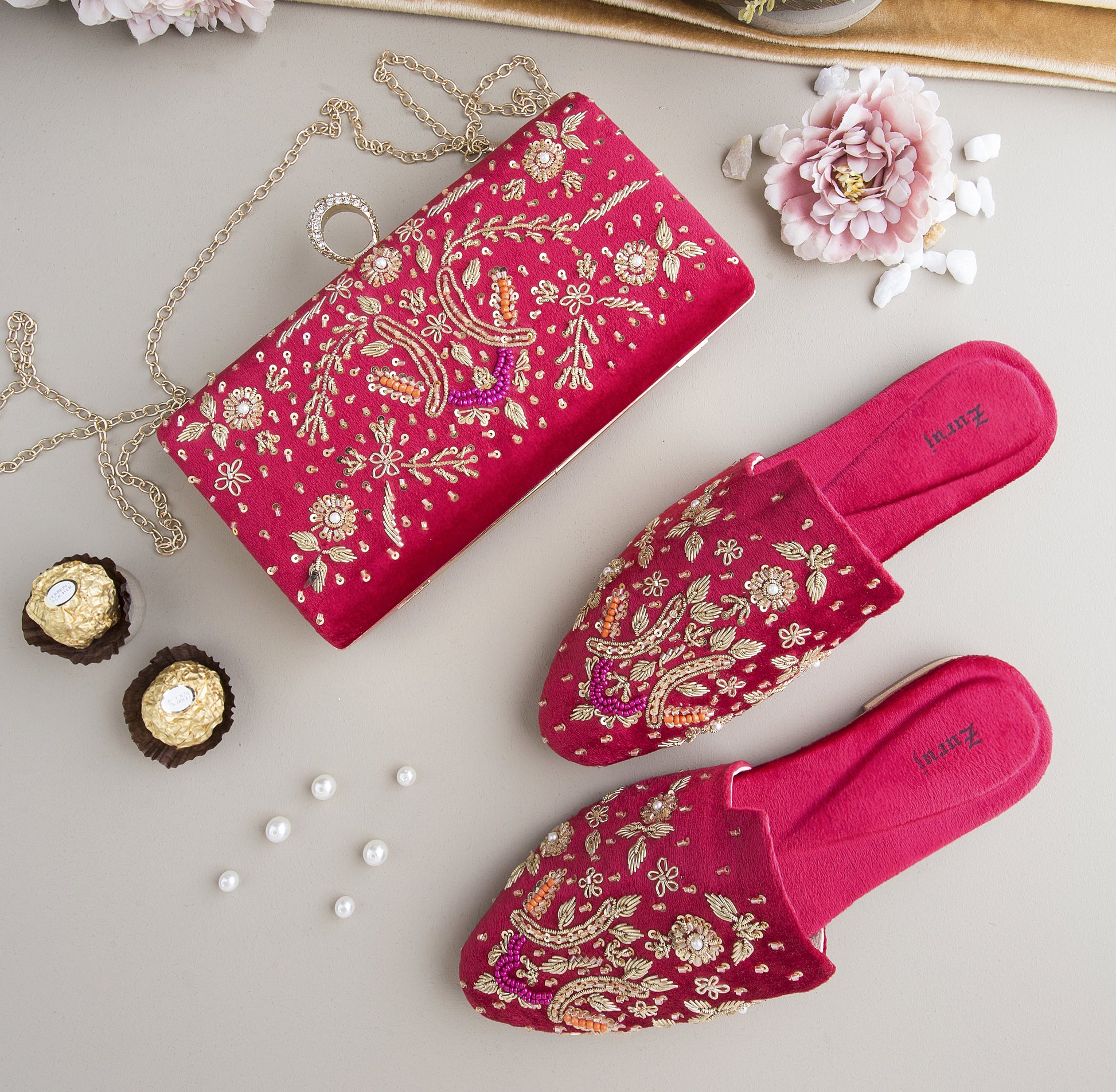 MC-237-PINK is a quintessential exemplary Combination of MULES X CLUTCH on PINK base with pleasant, luxurious and traditional artistry. These are the adorable heritages of Pakistan that are hand-sewed by determined cordwainers of rural areas to exhibit the utmost beauty.