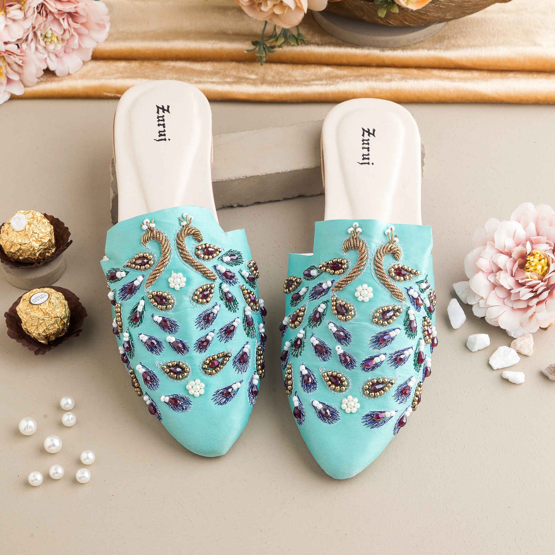 ML-11-SKYBLUE is a quintessential exemplary of pleasant, luxurious and traditional artistry made on SKY BLUE base with beautiful combination embroidery work. These are the adorable heritages of Pakistan that are hand-sewed by determined cordwainers of rural areas to exhibit the utmost beauty of prepossessing feet.