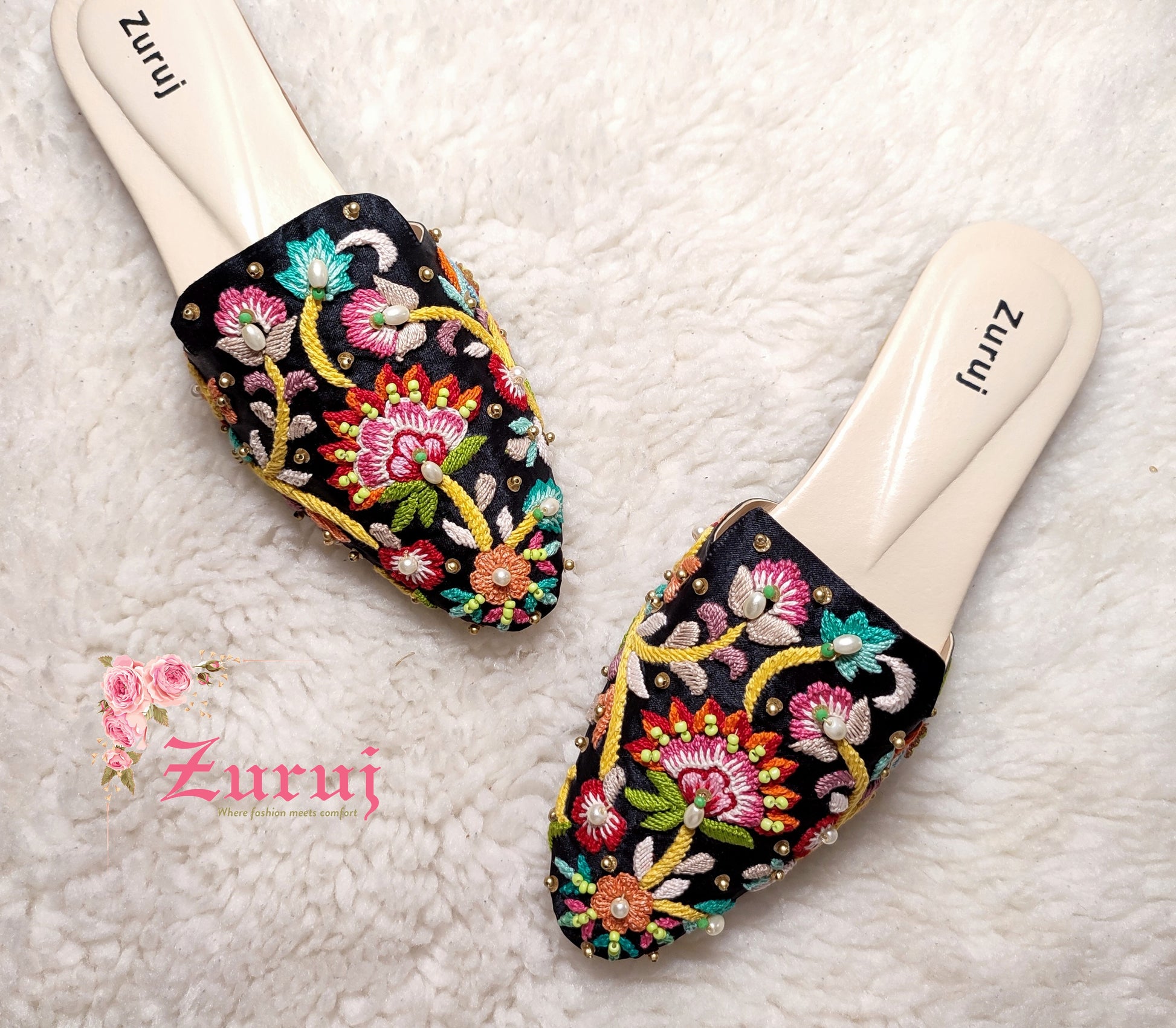 ML-15 is a quintessential exemplary of pleasant, luxurious and traditional artistry made on Black base with beautiful combination of handmade embroidery work. These are the adorable heritages of Pakistan that are hand-sewed by determined cordwainers of rural areas to exhibit the utmost beauty of prepossessing feet.