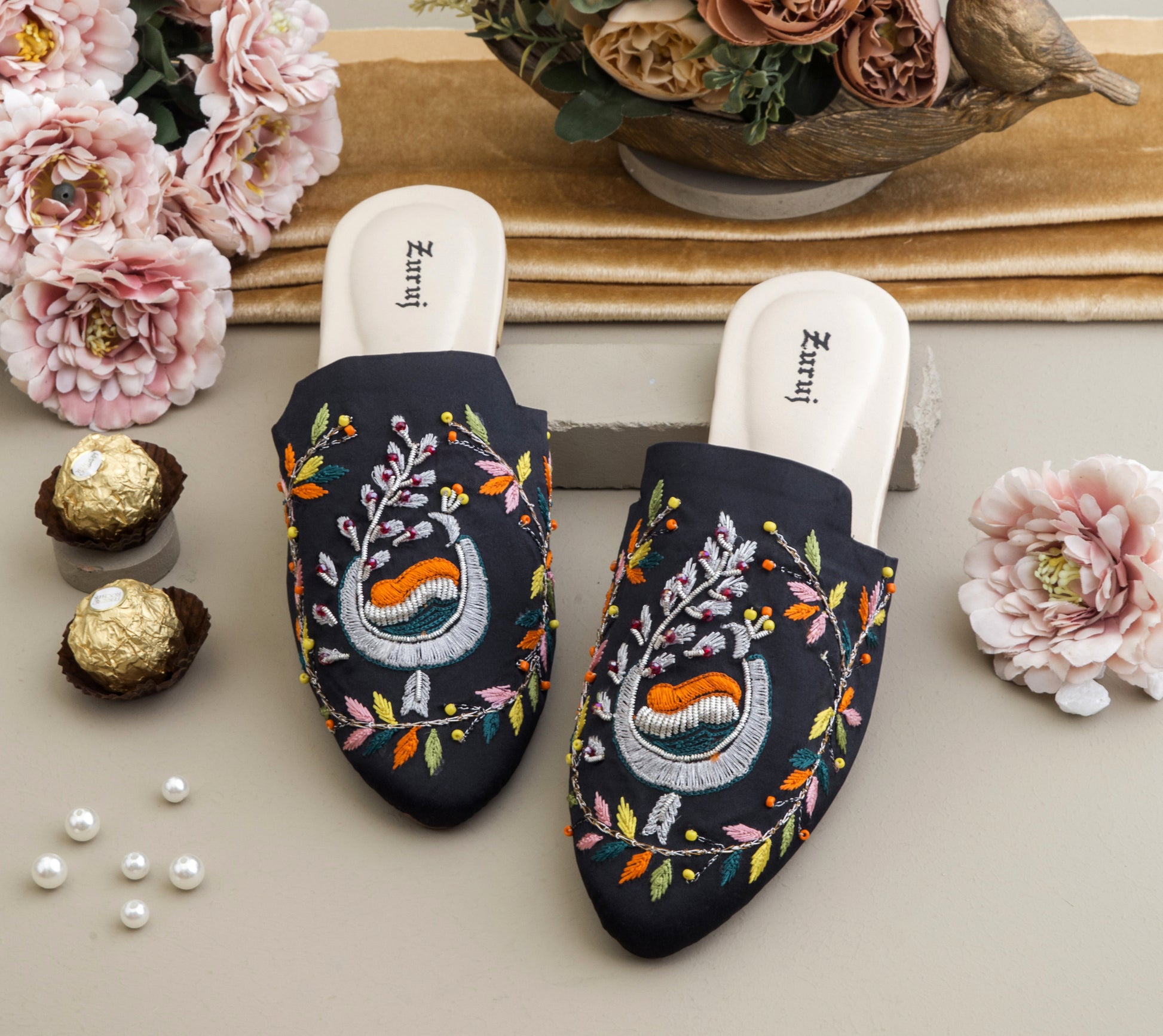 ML-16-Black is a quintessential exemplary of pleasant, luxurious and traditional artistry made on Black base with beautiful combination multi color embroidery work. These are the adorable heritages of Pakistan that are hand-sewed by determined cordwainers of rural areas to exhibit the utmost beauty of prepossessing feet.