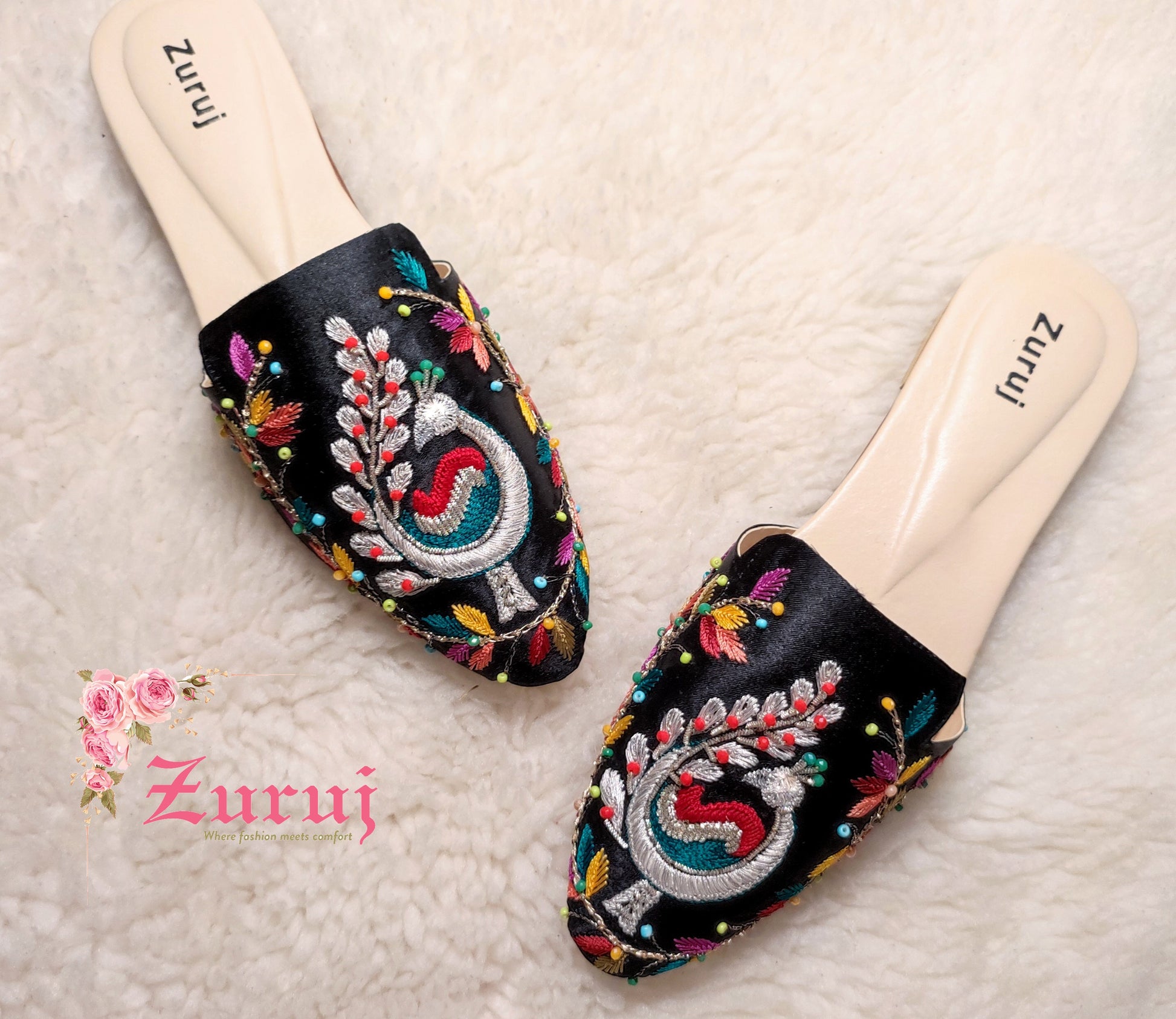 ML-16 is a quintessential exemplary of pleasant, luxurious and traditional artistry made on Black base with beautiful combination of handmade embroidery work. These are the adorable heritages of Pakistan that are hand-sewed by determined cordwainers of rural areas to exhibit the utmost beauty of prepossessing feet.