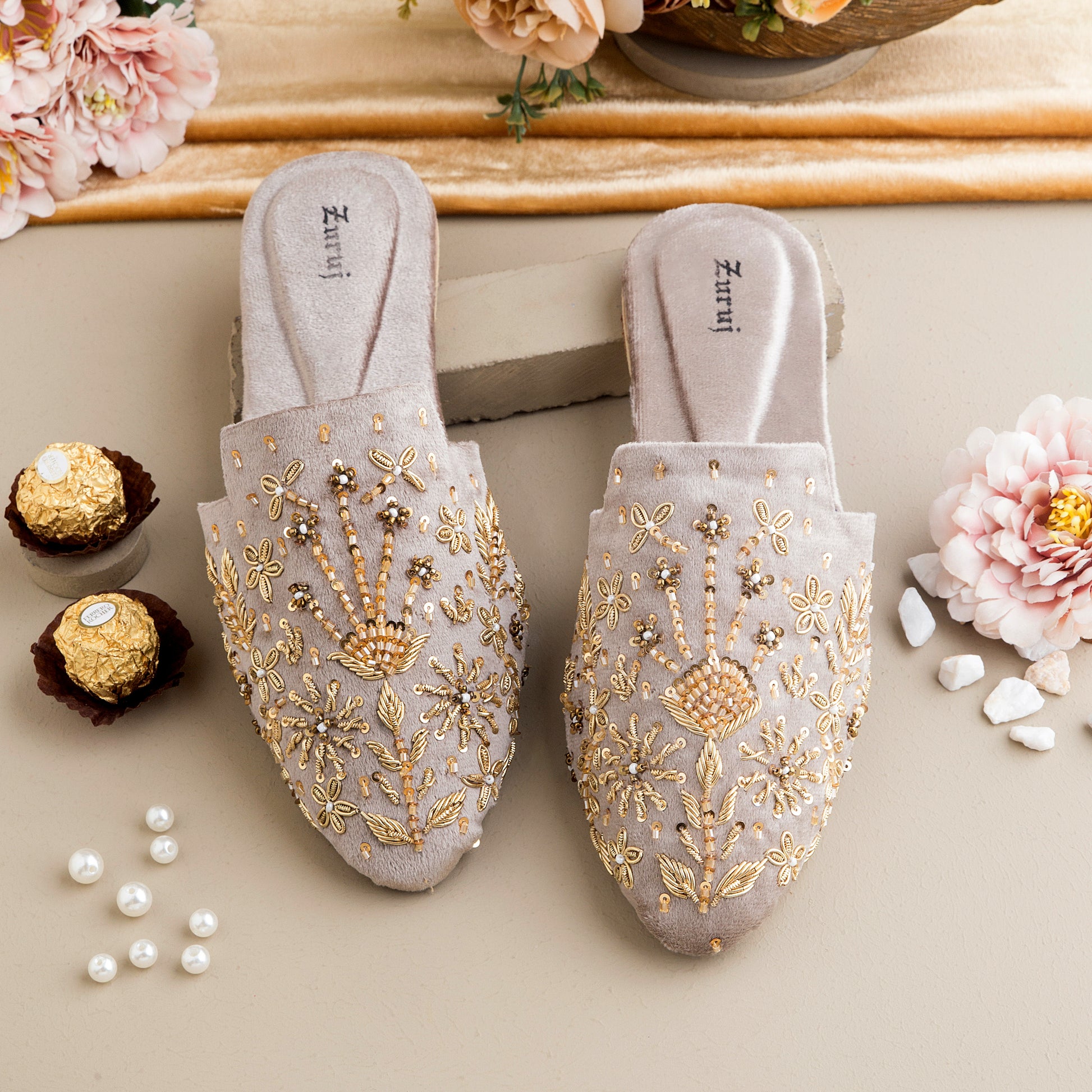 ML-238-GREY is a quintessential exemplary of pleasant, luxurious and traditional artistry made on GREY base with beautiful combination embroidery work. These are the adorable heritages of Pakistan that are hand-sewed by determined cordwainers of rural areas to exhibit the utmost beauty of prepossessing feet.