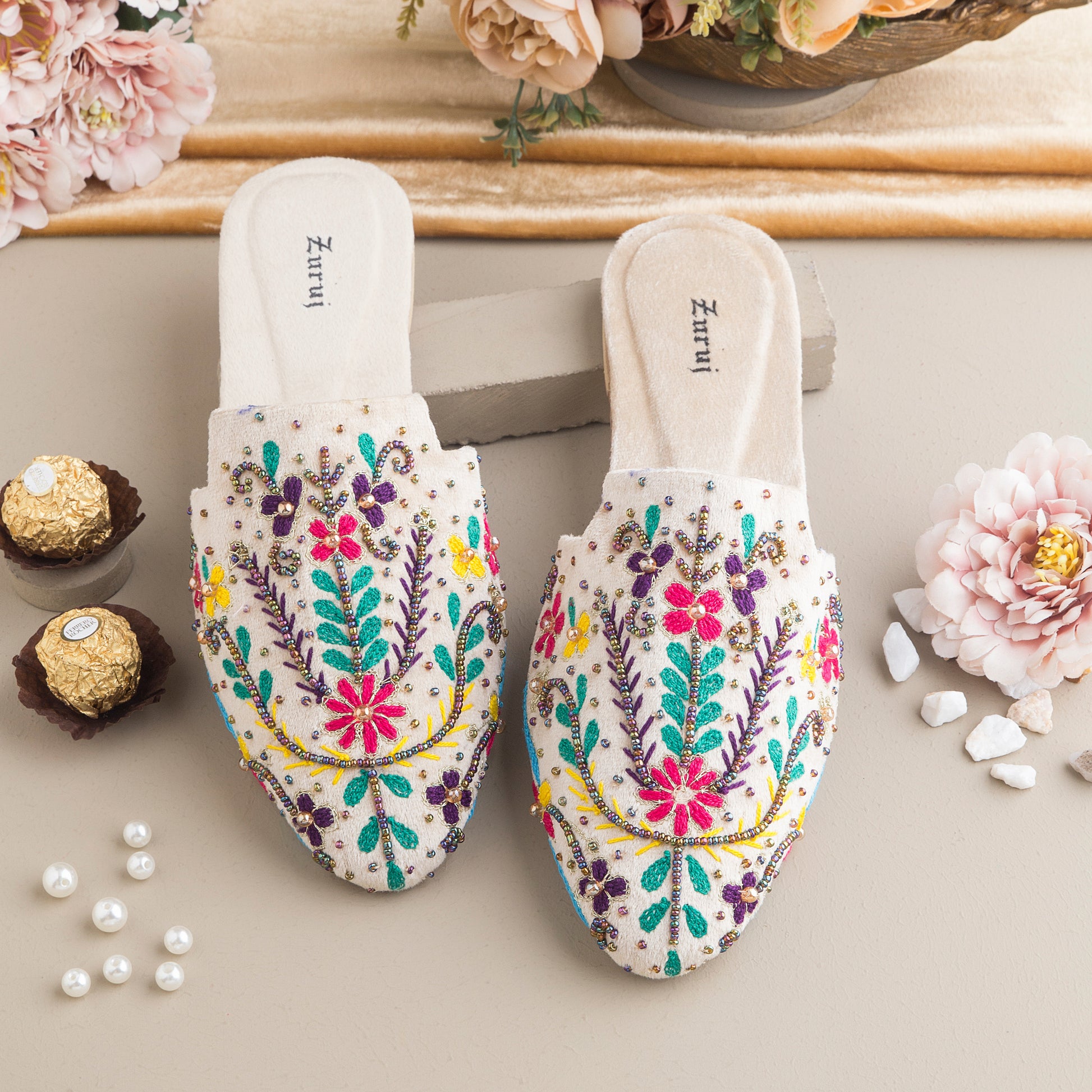 ML-251-CREAM is a quintessential exemplary of pleasant, luxurious and traditional artistry made on CREAM base with beautiful combination embroidery work. These are the adorable heritages of Pakistan that are hand-sewed by determined cordwainers of rural areas to exhibit the utmost beauty of prepossessing feet.