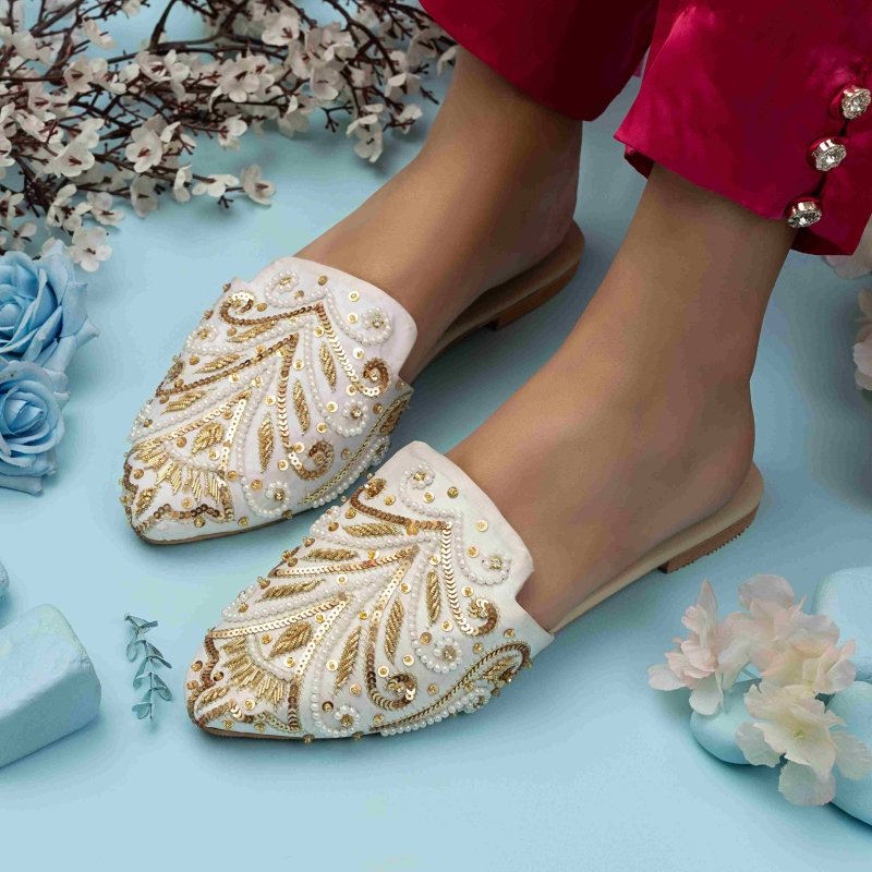 ML-283-White is a quintessential exemplary of pleasant, luxurious and traditional artistry made on White base with beautiful combination embroidery work. These are the adorable heritages of Pakistan that are hand-sewed by determined cordwainers of rural areas to exhibit the utmost beauty of prepossessing feet.