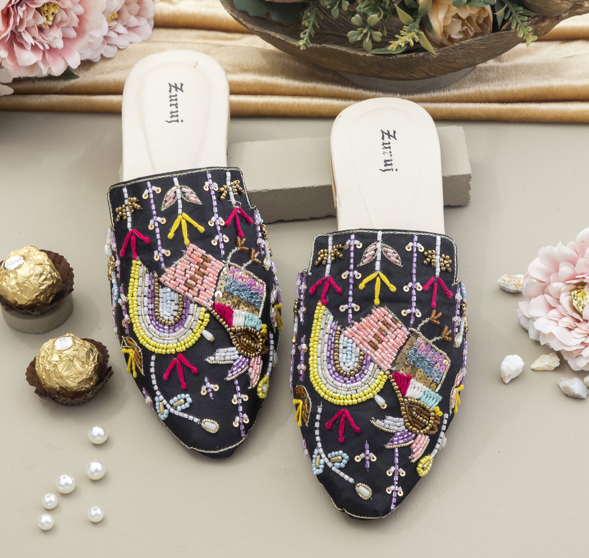 ML-9-Black is a quintessential exemplary of pleasant, luxurious and traditional artistry made on Black base with beautiful combination embroidery work. These are the adorable heritages of Pakistan that are hand-sewed by determined cordwainers of rural areas to exhibit the utmost beauty of prepossessing feet.