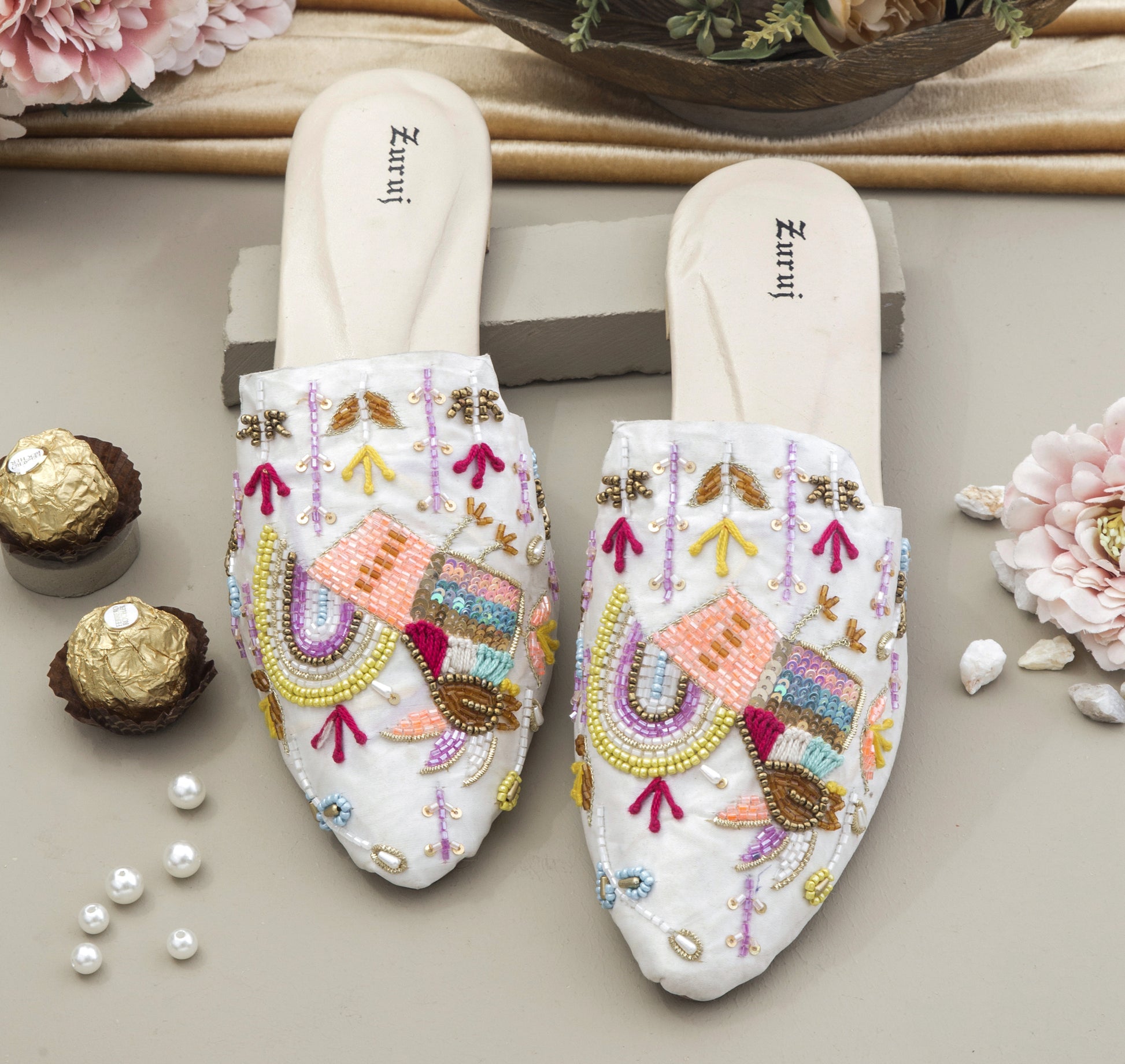 ML-9-White is a quintessential exemplary of pleasant, luxurious and traditional artistry made on White base with beautiful combination embroidery work. These are the adorable heritages of Pakistan that are hand-sewed by determined cordwainers of rural areas to exhibit the utmost beauty of prepossessing feet.