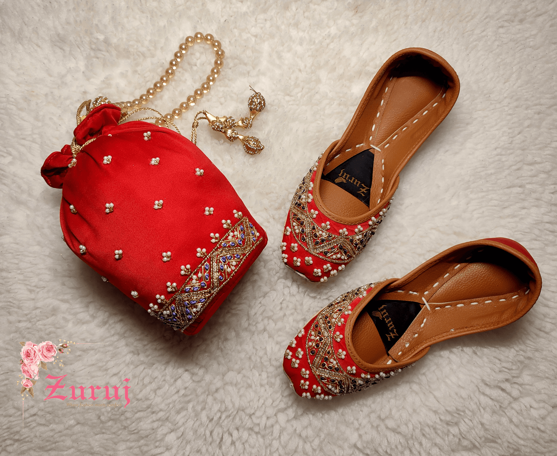 PL-23 is a quintessential exemplary Combination of Potli X Khussa on Red base with pleasant, luxurious and traditional artistry. These are the adorable heritages of Pakistan that are hand-sewed by determined cordwainers of rural areas to exhibit the utmost beauty.