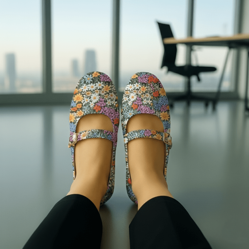 Step into effortless charm with our Printed Mary Jane Pumps, designed to bring comfort and style together in the prettiest way. Crafted with a soft cushioned sole and lightweight construction, these pumps are perfect for long wear — whether you're heading to work, university, or a casual day out.
