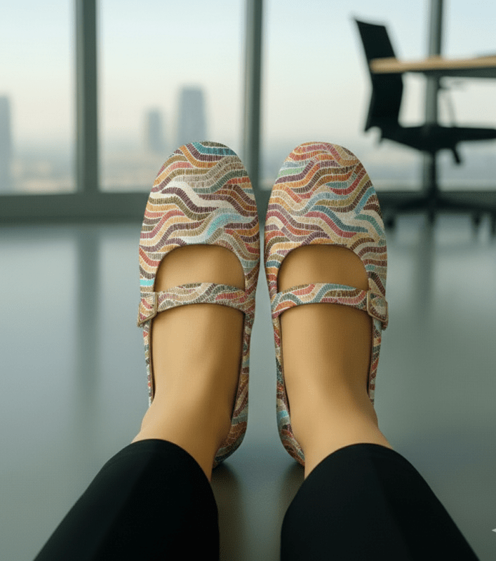 Step into effortless charm with our Printed Mary Jane Pumps, designed to bring comfort and style together in the prettiest way. Crafted with a soft cushioned sole and lightweight construction, these pumps are perfect for long wear — whether you're heading to work, university, or a casual day out.