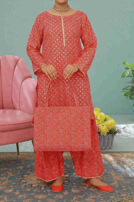 Digitally Printed Shirt, Trouser & Zari Monar Dupatta (2.44 MTR)