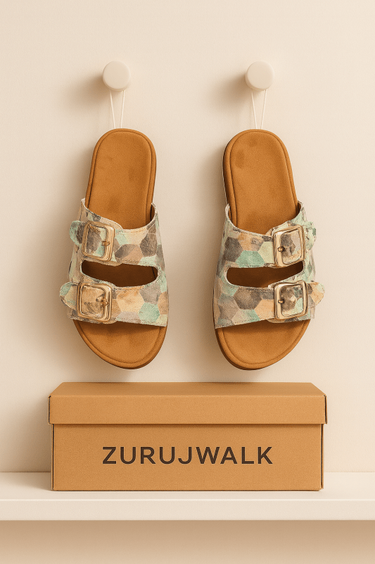 Step into effortless comfort with our Rustic Mosaic Slides – a perfect blend of artisanal design and everyday wearability. Featuring a unique geometric tile-inspired pattern in earthy tones of copper, teal, and muted lavender, these double-buckle slip-ons offer a chic boho vibe for the modern woman. The soft cushioned sole ensures all-day support, while the adjustable straps provide a customized fit. Ideal for casual outings, errands, or lounging in style.