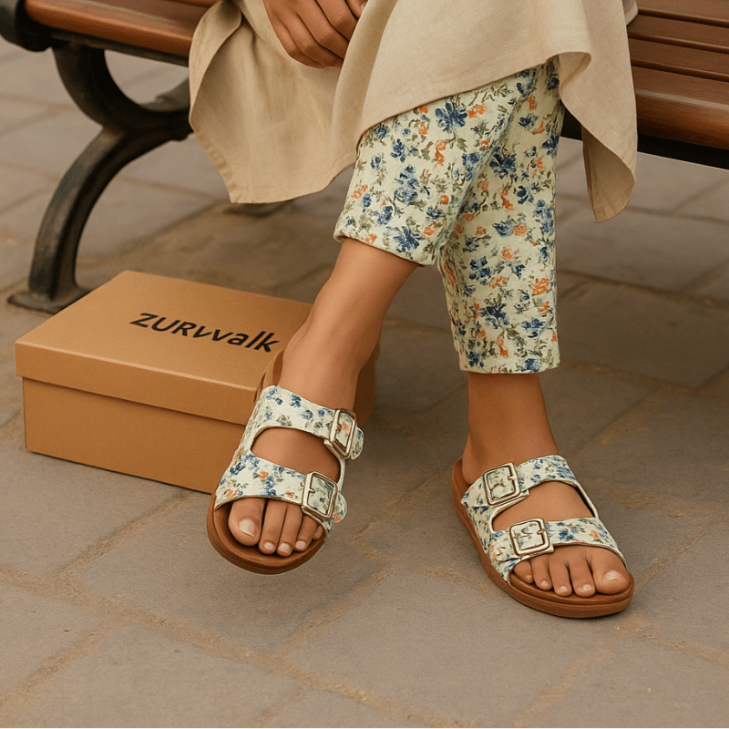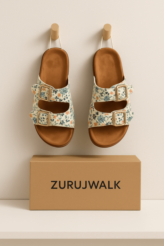Step into comfort and charm with the BloomGlide Blue floral buckle sliders – where elegance meets everyday ease. Featuring a cushioned suede insole and a rich navy canvas upper adorned with delicate rose prints, these slip-ons are perfect for casual strolls, brunches, or laid-back evenings. The dual silver-tone buckles offer adjustable fit and timeless flair. An ideal addition to your summer and spring footwear collection.