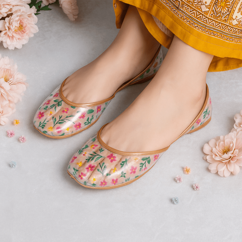 Tp-6 is a quintessential exemplary of pleasant, luxurious and traditional artistry made on transparent color base with beautiful color print. These are the adorable heritages of Pakistan that are hand-sewed by determined cordwainers of rural areas to exhibit the utmost beauty of prepossessing feet.