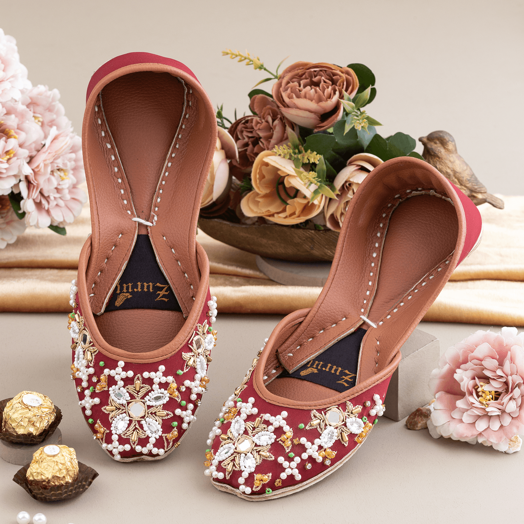 Zun-187-Maroon is a quintessential exemplary of pleasant, luxurious and traditional artistry made on Maroon color base with beautiful handmade work. These are the adorable heritages of Pakistan that are hand-sewed by determined cordwainers of rural areas to exhibit the utmost beauty of prepossessing feet.