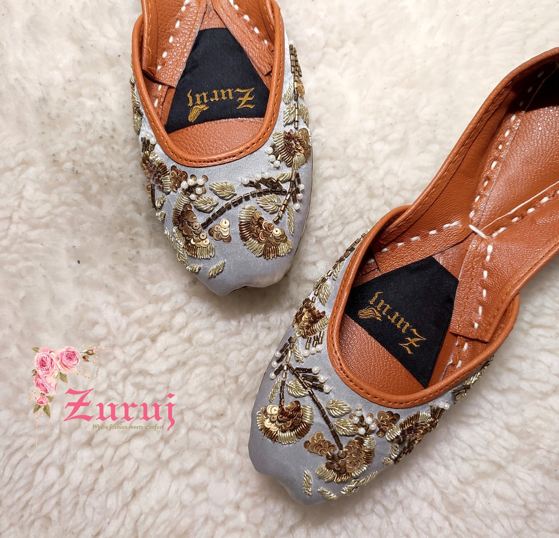 zun-223 is a quintessential exemplary of pleasant, luxurious and traditional artistry made on silver color base with beautiful handmade work. These are the adorable heritages of Pakistan that are hand-sewed by determined cordwainers of rural areas to exhibit the utmost beauty of prepossessing feet.