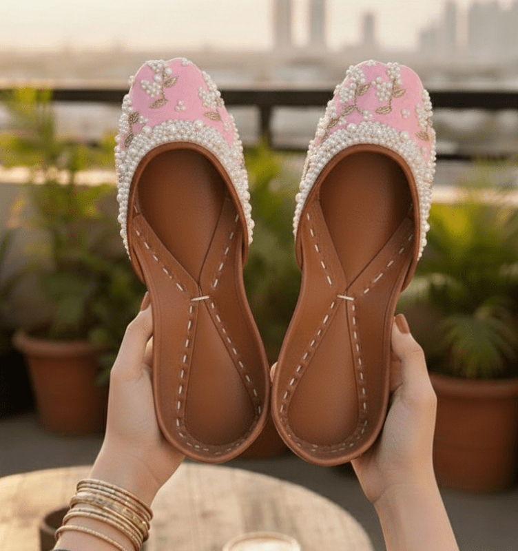 Zun-131 is a quintessential exemplary of pleasant, luxurious and traditional artistry made on baby pink base with beautiful combination of white pearls embroidery work. These are the adorable heritages of Pakistan that are hand-sewed by determined cordwainers of rural areas to exhibit the utmost beauty of prepossessing feet.
