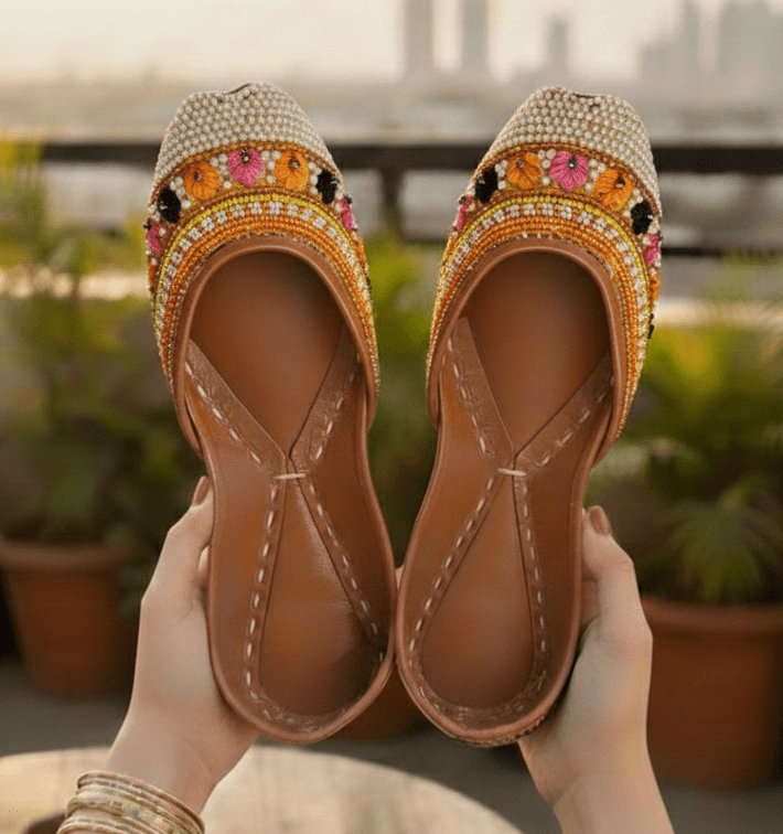 Zun-48-Fawn is a quintessential exemplary of pleasant, luxurious and traditional artistry made on fawn color base with beautiful handmade work. These are the adorable heritages of Pakistan that are hand-sewed by determined cordwainers of rural areas to exhibit the utmost beauty of prepossessing feet.